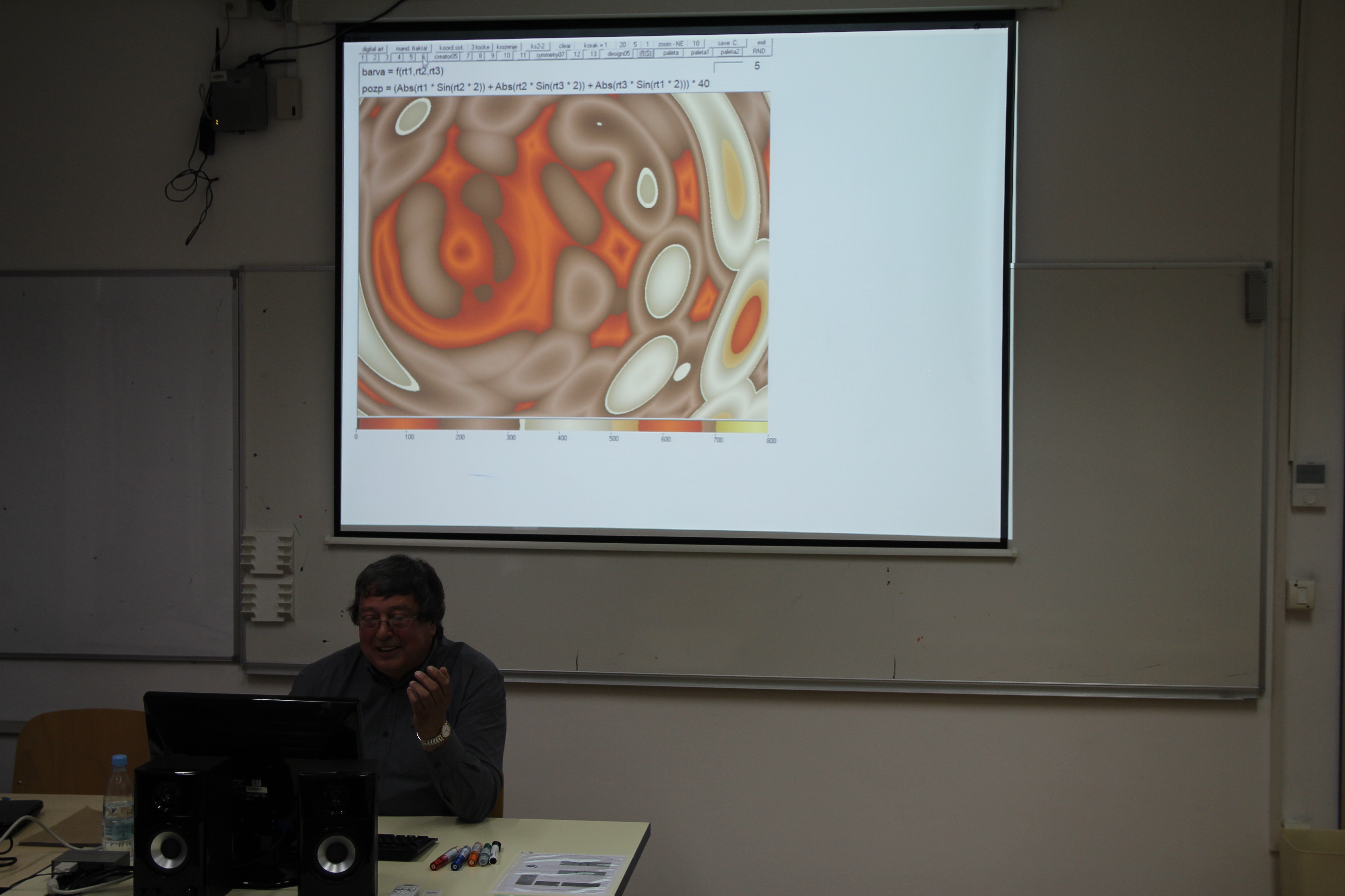 Predavateljeva raziskovanja na področju razvoja programske opreme za generiranje slik so bila zato vedno tesno povezana z iskanjem inovativnih rešitev v okviru poznanih matematičnih principov. Na predavanju bodo predstavljena osnovna izhodišča za risanje slike v ravnini s kartezičnimi in polarnimi koordinatami ter risanje slike v kompleksni ravnini. Poleg nazornega prikaza »vizualizacije« konkretnih matematičnih izrazov bo predavatelj demonstriral delovanje nekaterih programov, ki uporabljajo opisane koncepte.